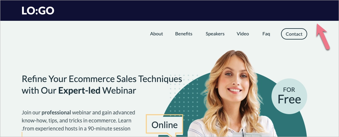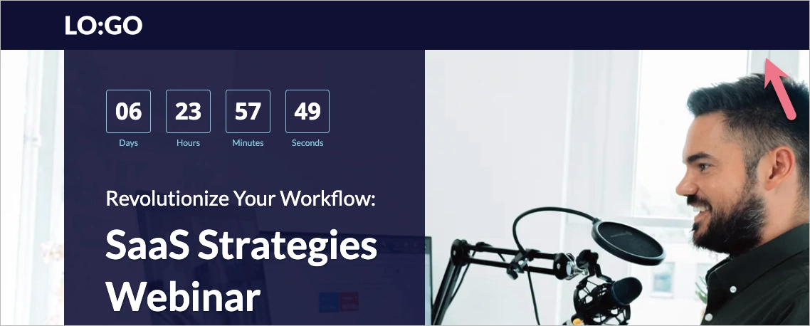 Header with the same logo on multiple landing pages. If your branding changes, you can easily update the image or colors across all landing pages where this Smart Section is placed.