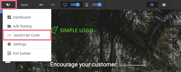 You can also access the JavaScript Code section directly from the editor of your landing page.