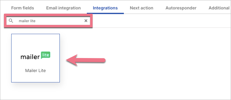 3. Go to the Integrations tab and choose MailerLite. You can use the search bar to look for the integration. Type the name and press enter.