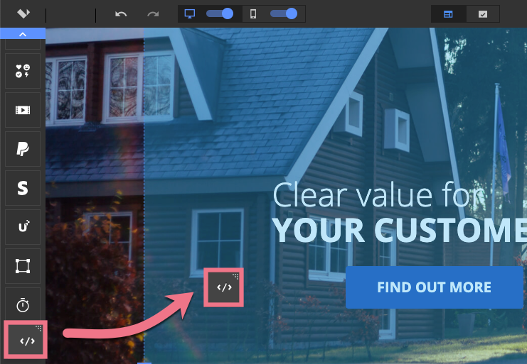 You can also access the JavaScript Code section directly from the editor of your landing page.