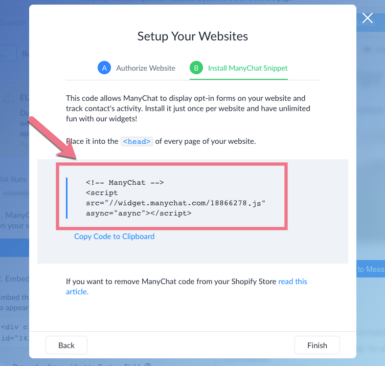 5. Copy the snippet, open a new tab, and go to Landingi.