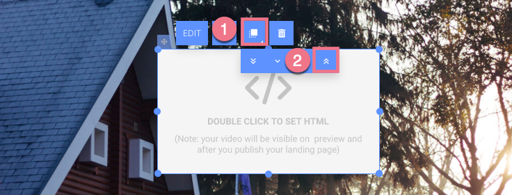 4. Adjust the position of the widget. Click Change Layer (1) and Move to Top (2). Click on Edit.