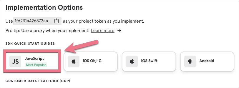 2. In your dashboard, click on Settings in the top right corner, and choose Set Up Mixpanel.