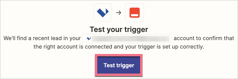 6. Zapier will now test the trigger: click on Test trigger, to send a test lead. If the trigger is set up correctly, you will see the default Lead A. This lead is only to check the connection and will not be added to the list of leads in Landingi or Zapier.