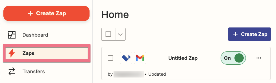 1. Go to the Zaps tab and click Create Zap (1 or 2).