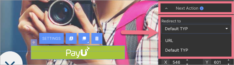 5. In the Next Action tab, you can specify an action after the payment has been made. By default, the user will be redirected to a thank you page (Default TYP), but if your landing page has multiple payment gateways or other signup forms, you can create and link (URL) a landing page that displays only after a transaction is completed.