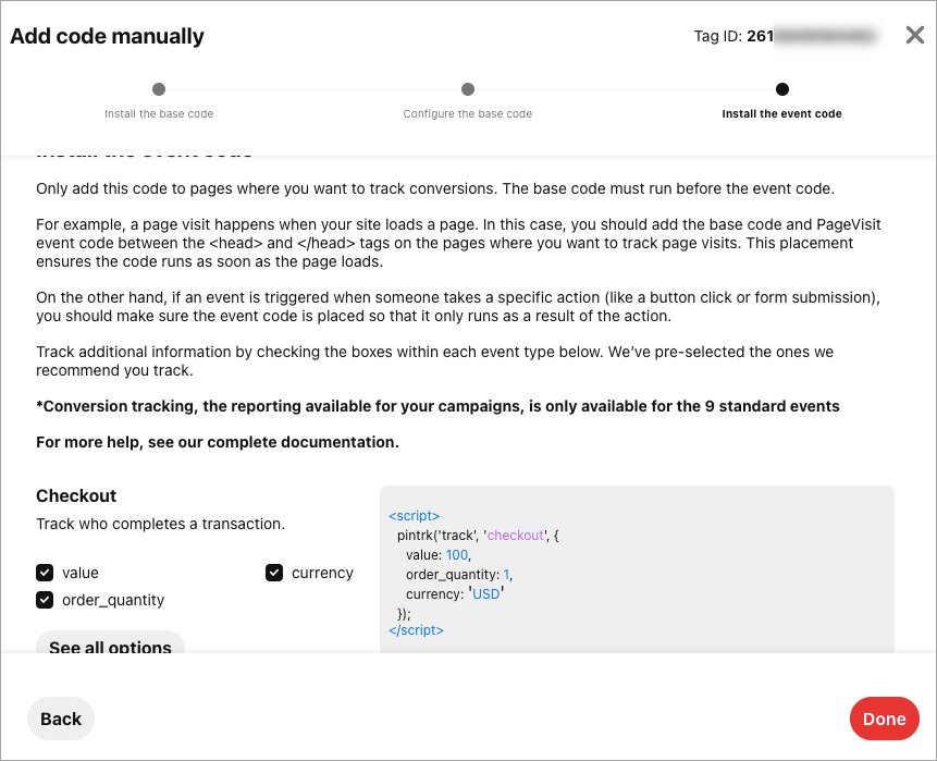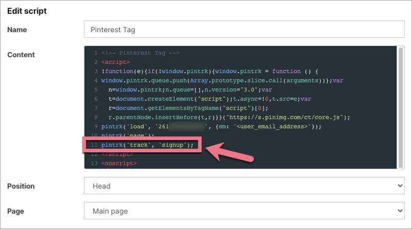 Pinterest tag consists of two components: