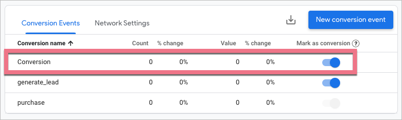 2. By default, a pop-up conversion is an event called Conversion. All you have to do is mark the event as a conversion in GA4.
