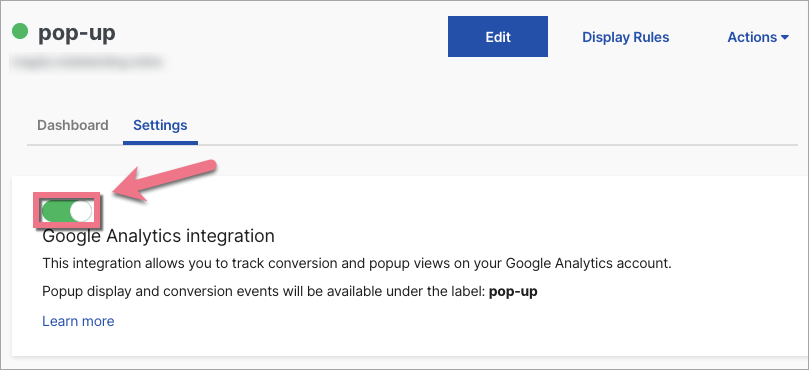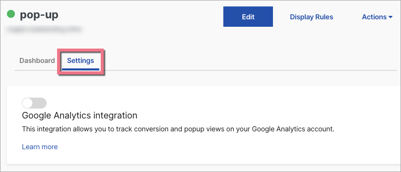 2. Navigate to the Settings tab. By default, Google Analytics integration is disabled.