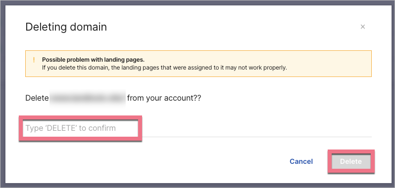 2. In a pop-up window, type DELETE to confirm. Then click Delete.