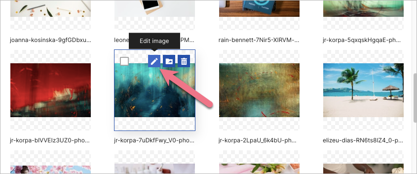 3. Once the file is uploaded to the gallery, hover over the image and click Edit image (pencil icon).