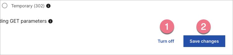4. To stop the schedule, click Turn off (1). At any time, you can change the schedule configuration and Save changes (2).