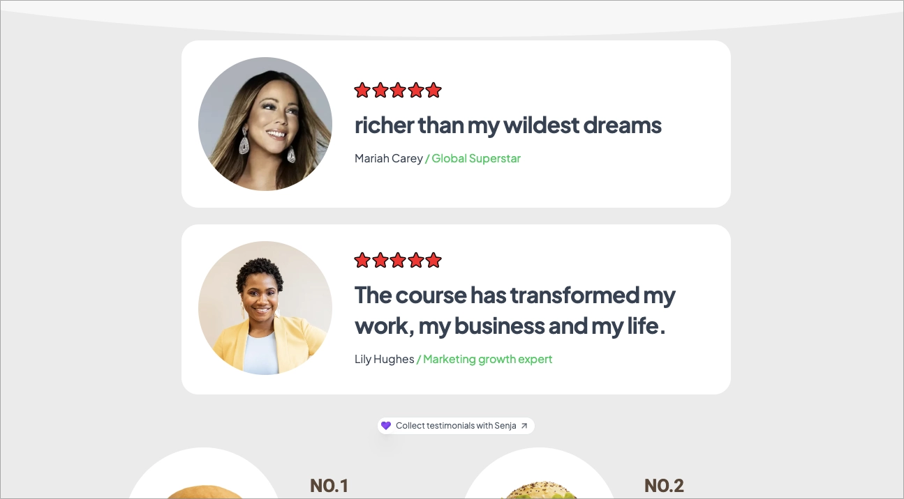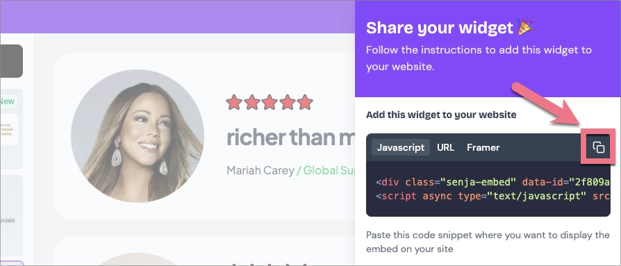 Get your testimonial widget code from Senja