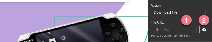 3. Click on the button and find the Click Action tab in the right-side toolbar. Select Download file as the action.