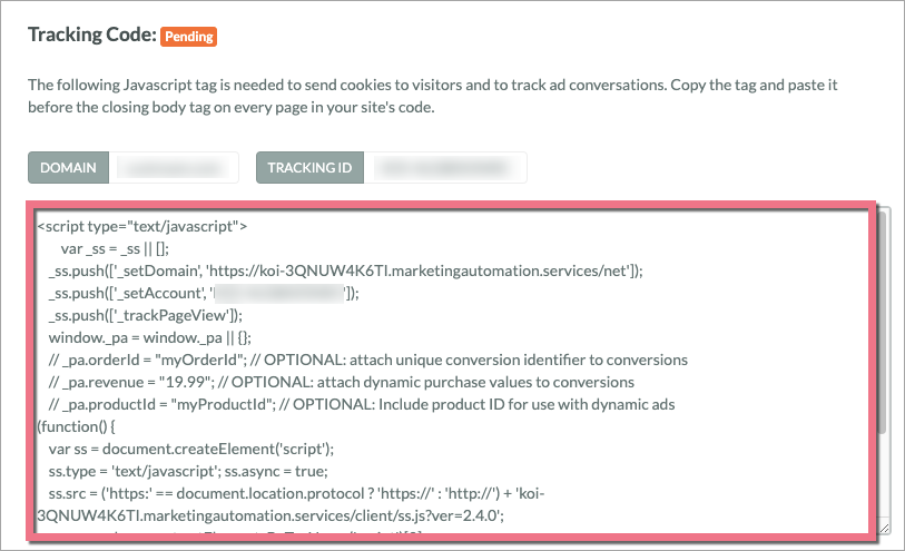 SharpSpring Ads (formerly Perfect Audience) is a retargeting platform – it helps you reach out to users who were previously interested in the product advertised on your landing page. It will help you determine the target group of potential customers who are most interested in your product. The first step is to install the JavaScript tracking tag.