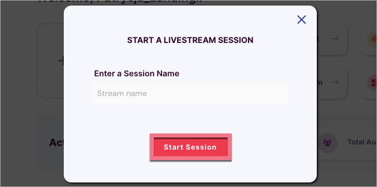 3. Name the stream and click Start Session.