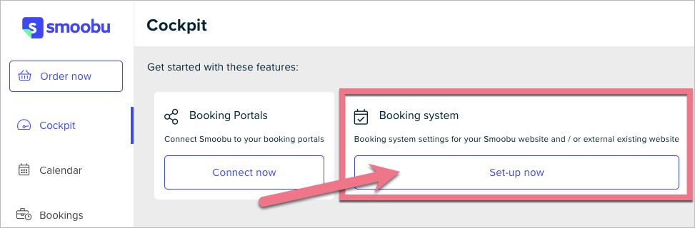 2. In the Cockpit tab, find the Booking system section and click Set-up now.