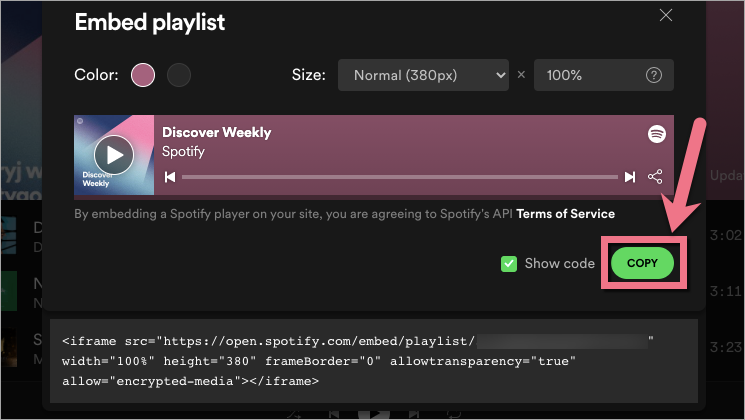 Get your code from Spotify