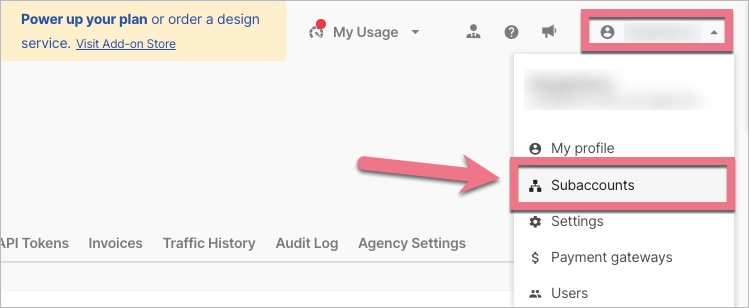 2. In the top panel, go to the drop-down menu, then select the Subaccounts tab.
