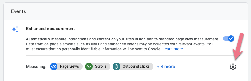 If you haven’t done it yet, scroll down and in Enhanced measurements settings (the gear icon), enable all options.