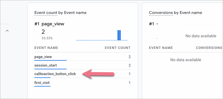 Now, your GA4 is capable of tracking click events every time a visitor clicks a button that leads them somewhere else on your domain. You can also mark the events as a conversion. Read this guide to learn how to do this.