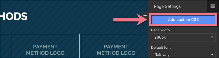 To add custom CSS code, go to Page Settings in a right-side toolbar and click Add custom CSS.