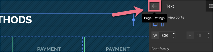 When editing, you can go back to Page Settings by clicking on the arrow: