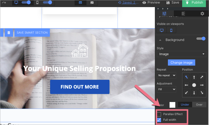6. You can edit the Unsplash image the same way as any other image. Unsplash provides high-definition images that are perfect for the parallax effect.