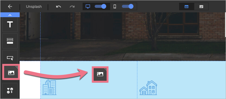 1. On the left side of the editor, find the Image widget, then drag and drop it into the active area of your landing page.