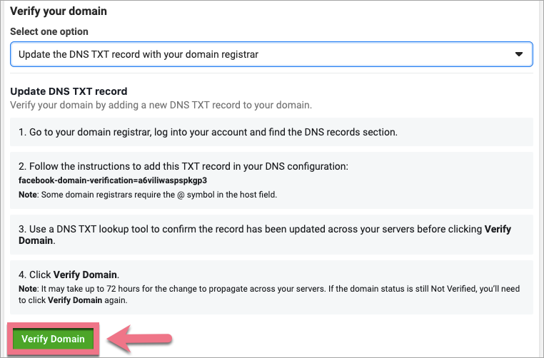 3. Go back to Facebook Business Manager and click Verify Domain.