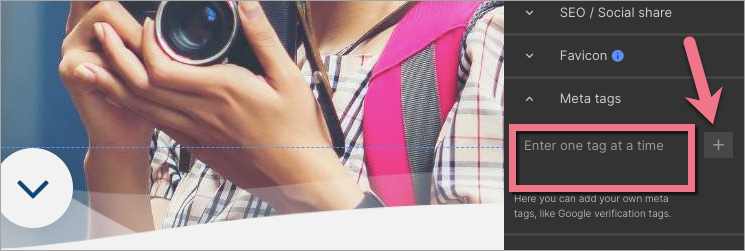 5. Paste the meta tag in the field. Click the plus icon (+) to confirm.