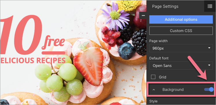 2. Navigate to the Page Settings in the right-side toolbar, then use the slider to turn on the Background.