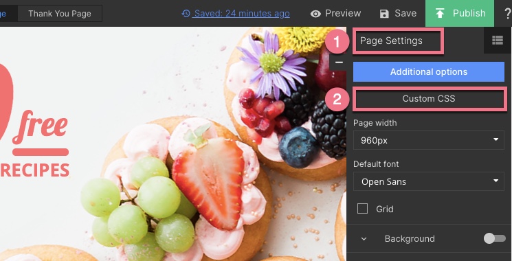 2. Navigate to the Page Settings in the right-side toolbar, then use the slider to turn on the Background.