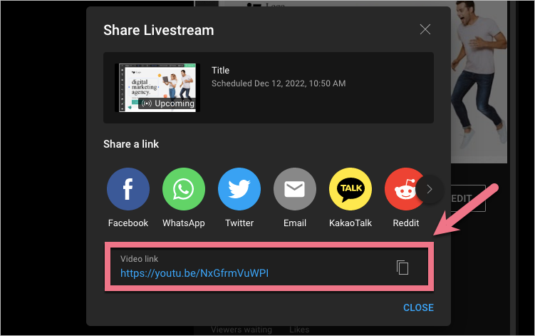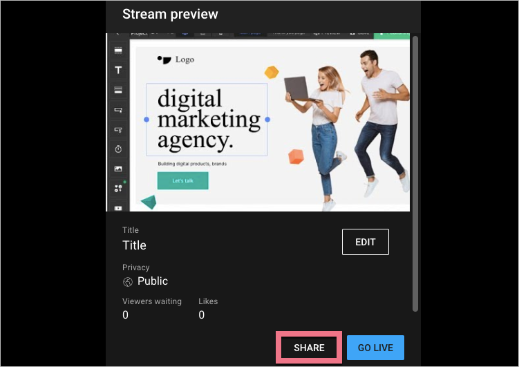 IMPORTANT: We don’t support live videos from Vimeo. Use the YouTube Studio to display a live video on your landing page.