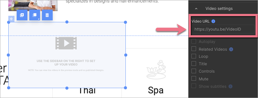5. Go to the Landingi editor, use the Video widget, and paste your link.