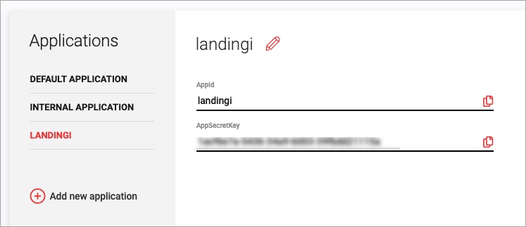 3. You will see the AppID and AppSecretKey of the new application. AppID is always the name you gave the application.