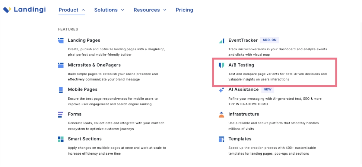 Using multifunctional platforms providing landing page builders with built-in optimization features, like Landingi, can help you run an A/B test on your app landing page and analyze results for implementing the most efficient versions on your original app website.