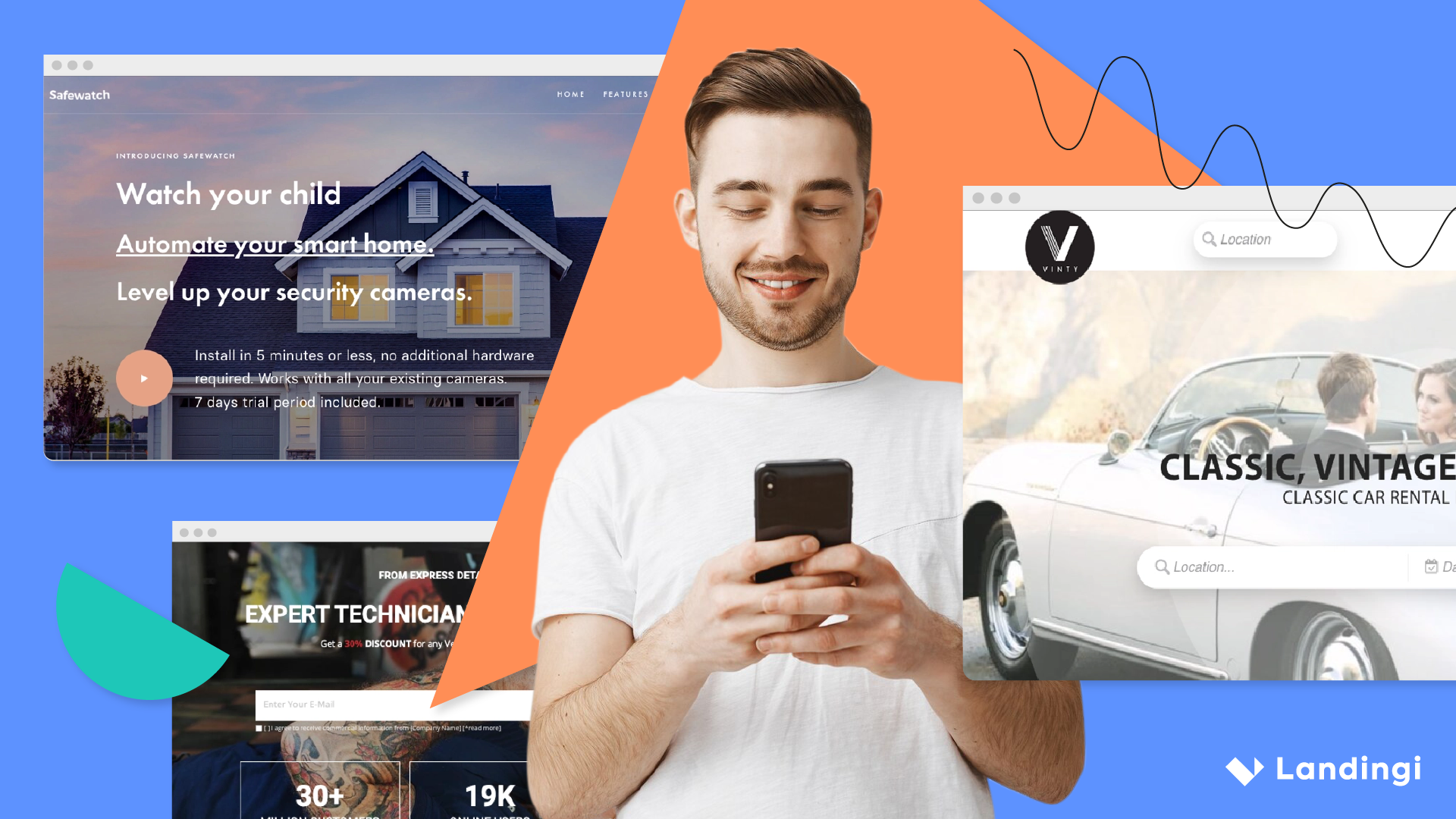 Check out Landingi’s template gallery to find a perfect pattern for your service landing page. Customize it with a user-friendly editor, run the A/B test to find the most effective elements, and be ready for success!
