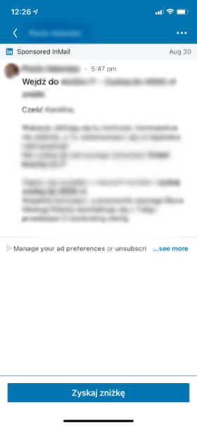 Najbardziej bezpośredni format reklamy, która wyświetla się jak nowa wiadomość w Twojej “linkedinowej” skrzynce odbiorczej.