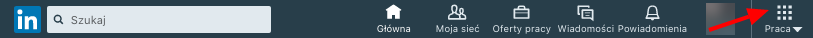 Jeśli masz już konto osobiste w LinkedIn, utworzenie konta reklamowego powinno zająć Ci tylko kilka kliknięć. Zaloguj się na swoje konto i rozwiń ikonę Praca na pasku, który wyświetla się na górze strony. Z menu wybierz opcję Reklama.