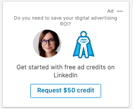 Reklama dynamiczna to dobry wybór, gdy chcesz wskazać na powiązanie użytkownika z brandem. Możesz wrzucić do treści reklamy makra, by imię użytkownika wyświetlało się w treści reklamy, a obok Twojego logo pojawiło się zdjęcie profilowe użytkownika. W tej formie wyświetlają się (jak na moim przykładzie) reklamy samych usług LinkedIn lub ogłoszenia rekrutacyjne.