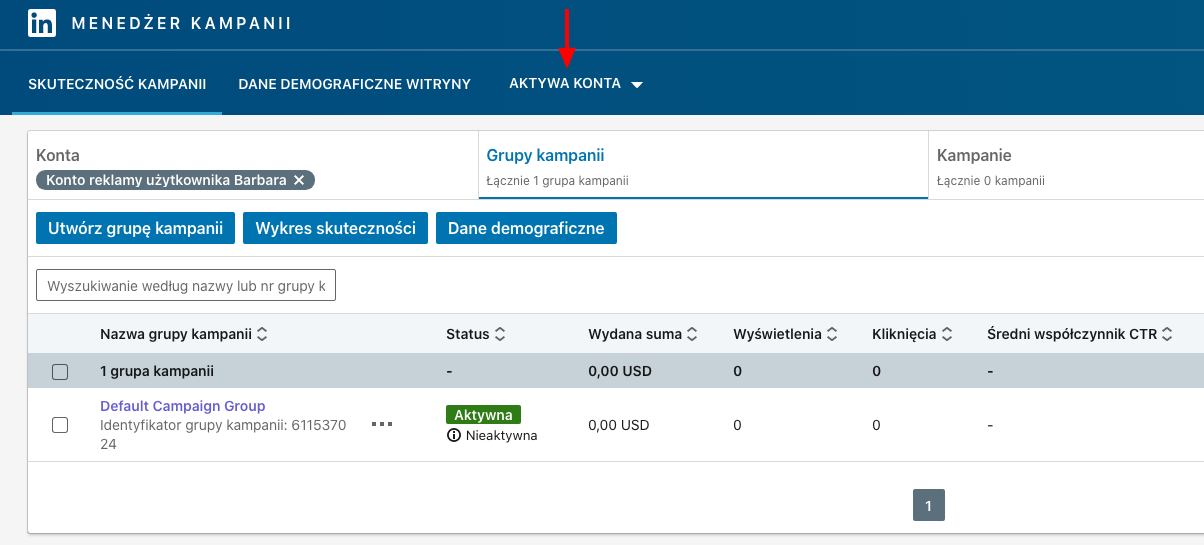 By utworzyć pasującą grupę odbiorców, wejdź w główny panel Twojego menedżera kampanii, wejdź na konto reklamy użytkownika i kliknij Aktywa konta.