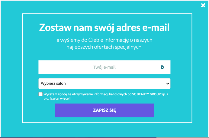 Pop upy dla sklepów internetowych świetnie sprawdzają się, gdy duża część ruchu przychodzi na stronę przez porównywarki cenowe, Google Shopping lub media społecznościowe. Wyskakujące okienko jest wtedy okazją do zaznajomienia użytkownika z kontekstem promocji, którą oferujesz.