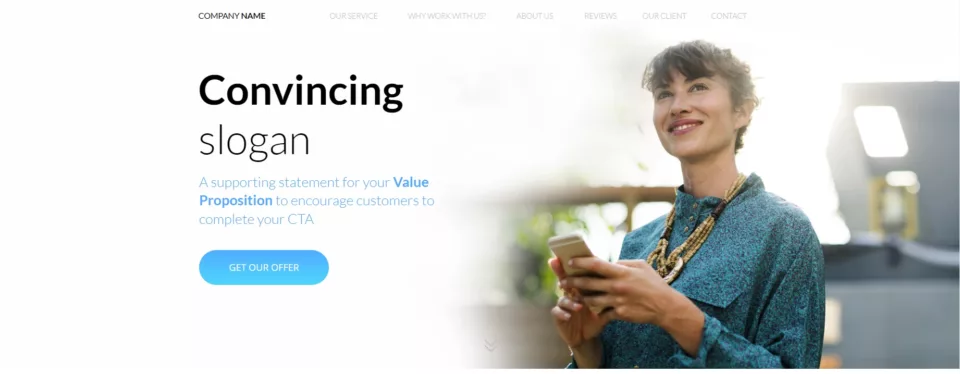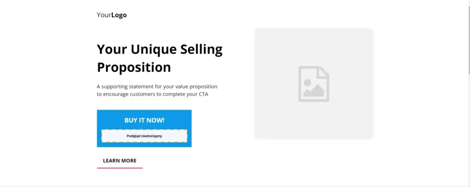 - Prosty, klarowny projekt z bezpośrednim copy w pierwszej sekcji strony docelowej.