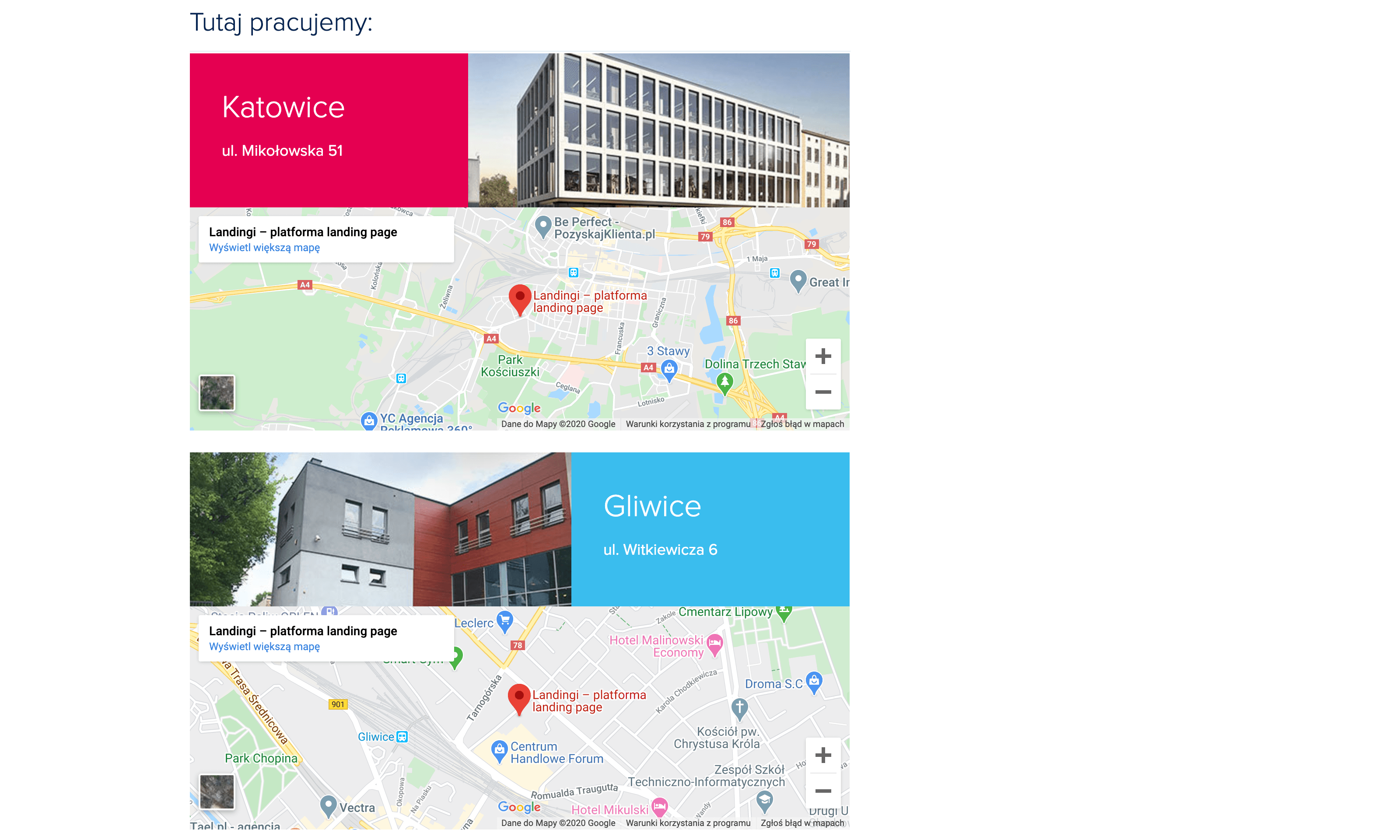 Znajdziesz tutaj zastosowanie dla odpowiednich sekcji landing page’a, które można dowolnie zaprojektować np. wykorzystując niestandardowe grafiki lub dodając elementy, które nie mogą pojawić się w serwisach ogłoszeniowych.