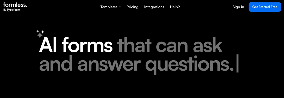 Podstawowa wersja Typeform jest znana z przyjaznego dla użytkownika interfejsu i możliwości projektowania formularzy, które sprawiają wrażenie konwersacji. Dzięki rozszerzeniu AI Formless. umożliwia zbieranie odpowiedzi poprzez niemal naturalne rozmowy zamiast polegania na konwencjonalnych strukturach formularzy.