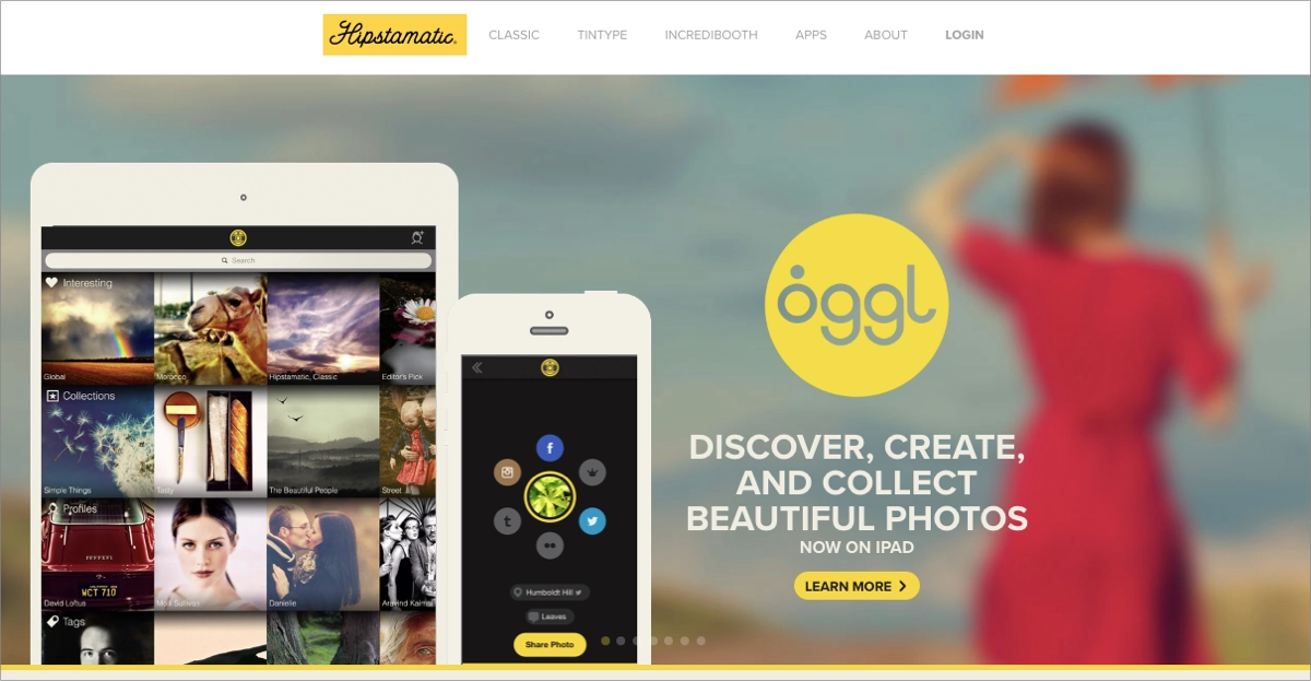Oggl (od Hipstamatic) to aplikacja fotograficzna, która zapewnia użytkownikom dostęp do platformy służącej do odkrywania, przechwytywania i selekcjonowania zachwycających obrazów. Pozwala na świeże spojrzenie na efekty fotograficzne Hipstamatic i łączy użytkowników z ogólnoświatową siecią fotografów. Aplikacja kładzie nacisk na podejście do robienia zdjęć z wykorzystsaniem najróżniejszych trybów, filtrów, efektów itd. Dodatkowe funkcje obejmują tryb SurfMode do transmisji pokazów slajdów na żywo oraz opcję udostępniania zdjęć na różnych platformach mediów społecznościowych.