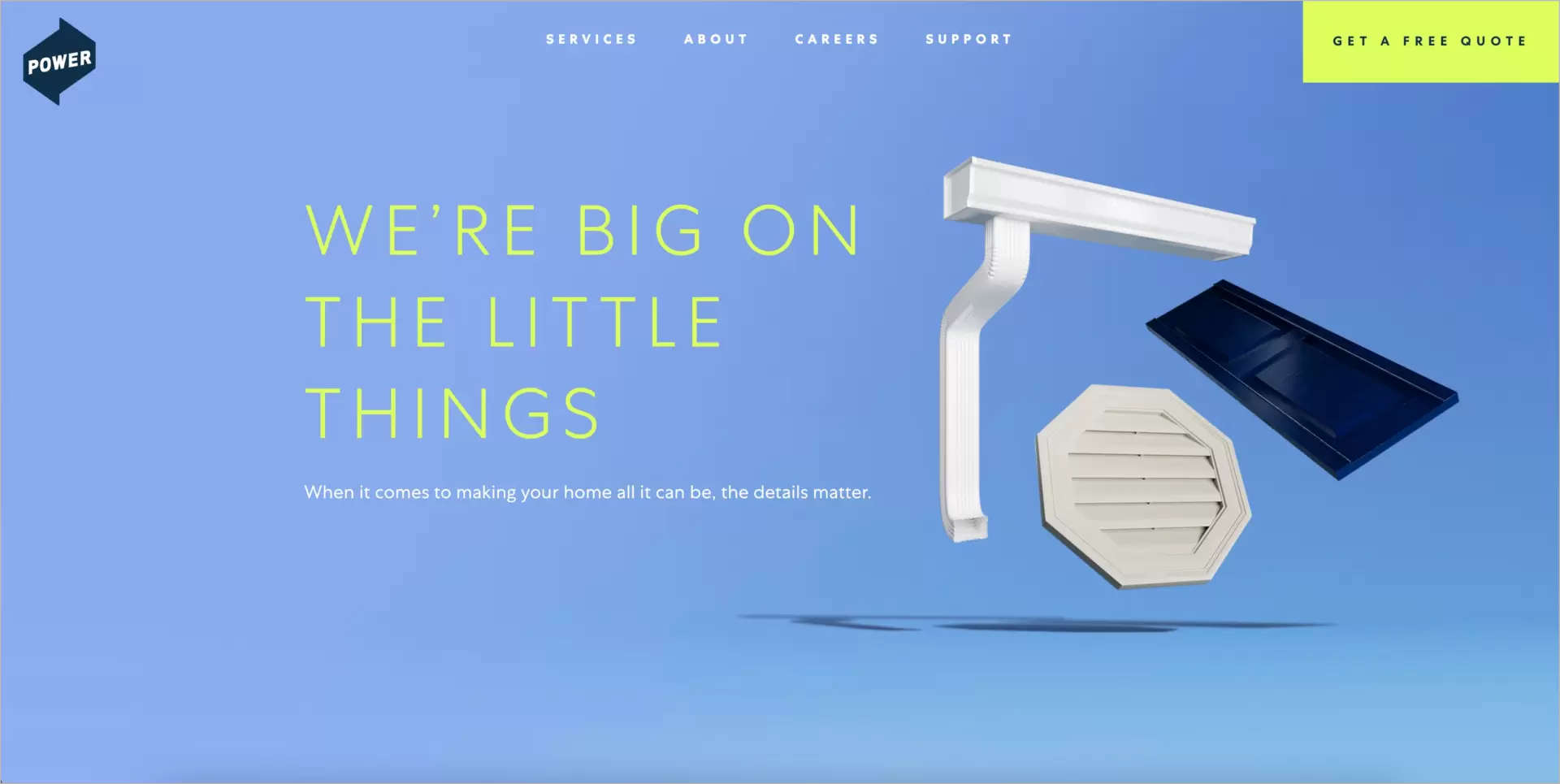 Power Home Remodeling, based in Chester, Pennsylvania, is an American company specializing in exterior remodeling services. They prepared a few landing pages for various exterior home improvement products and services (windows, roofing, siding, insulation, doors, accessories), focusing on the finer details that enhance aesthetics and functionality. The landing page below is dedicated to accessories: