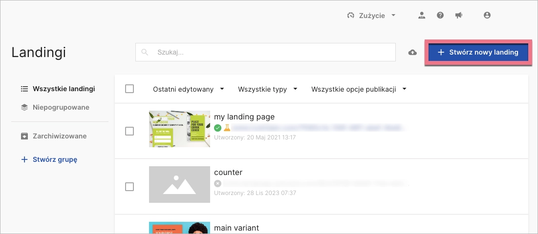 Aby stworzyć landing page w Landingi wystarczy się zalogować, uzyskać dostęp do swojego konta i kliknąć przycisk “Stwórz nowy landing”. W Landingi możesz skorzystać z wielu różnorodnych szablonów landing page’y i dostosować je do swoich potrzeb.