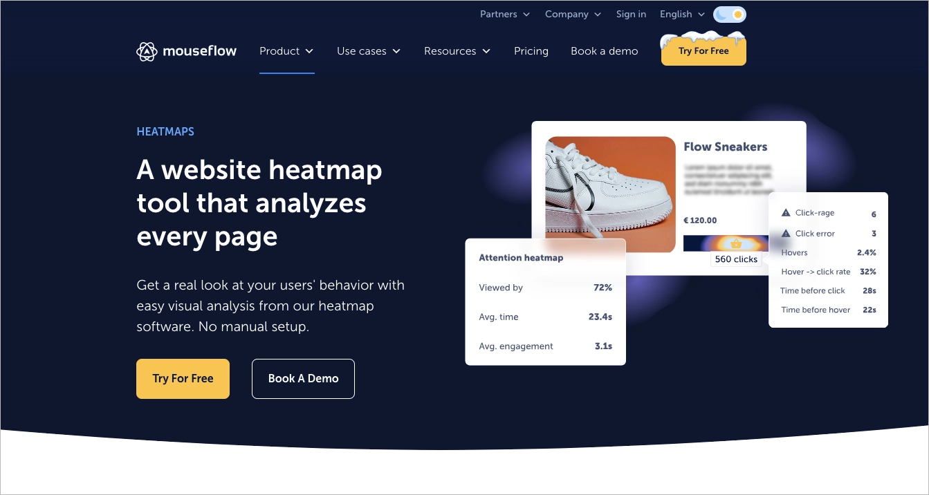 - Wizualizacja interakcji użytkownika: Mouseflow rejestruje 100% użytkowników i stron, oferując szczegółowy wgląd w zachowanie odwiedzających.